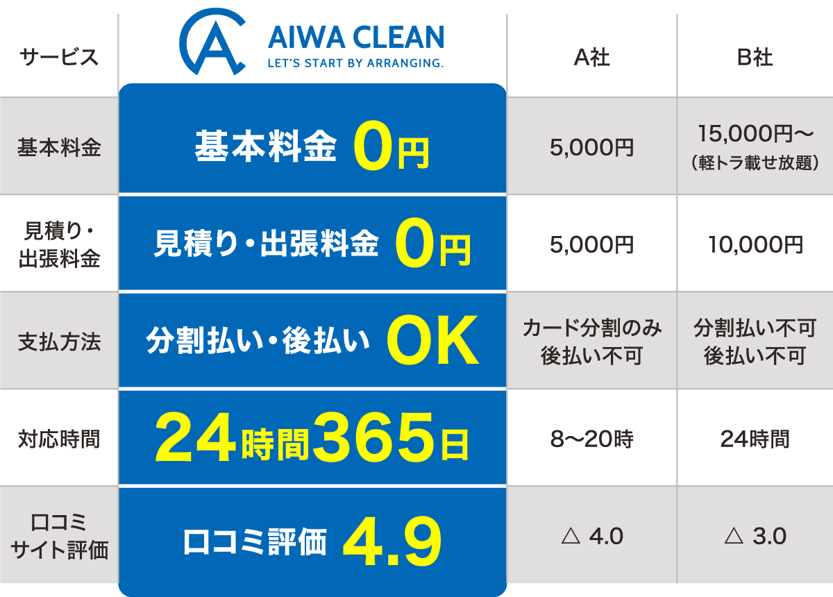 • 足の踏み場の無いところも見積り、作業していただけますか。